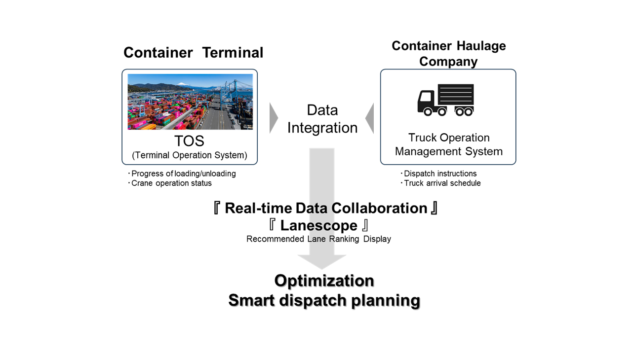 The newly launched service enables real-time data sharing between the terminal and container haulage companies, which previously operated with separate systems. By linking information such as truck arrival schedules and cargo details from container haulage companies with vessel loading/unloading plans and crane operation status from the terminal, the platform streamlines operations across the entire facility.